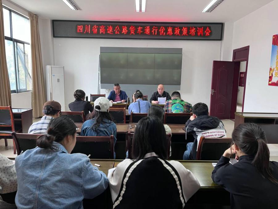 此次對員工的培訓主要是對2024年四川省高速公路通行費優(yōu)惠政策的解讀(普通貨車優(yōu)惠、集裝箱優(yōu)惠、新能源貨車優(yōu)惠等)和收費系統(tǒng)操作、收費常見問題答疑及特情處置等。